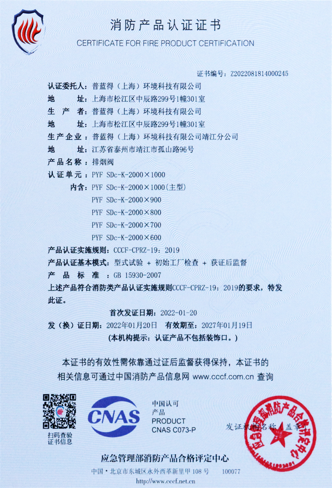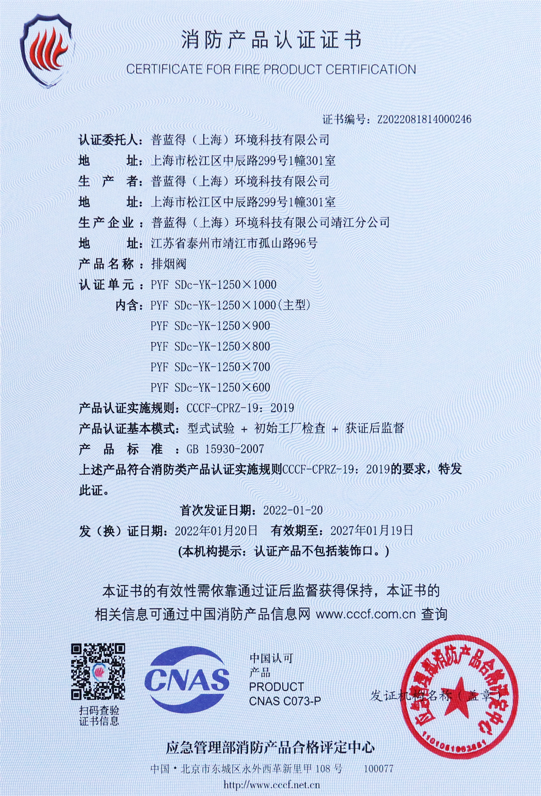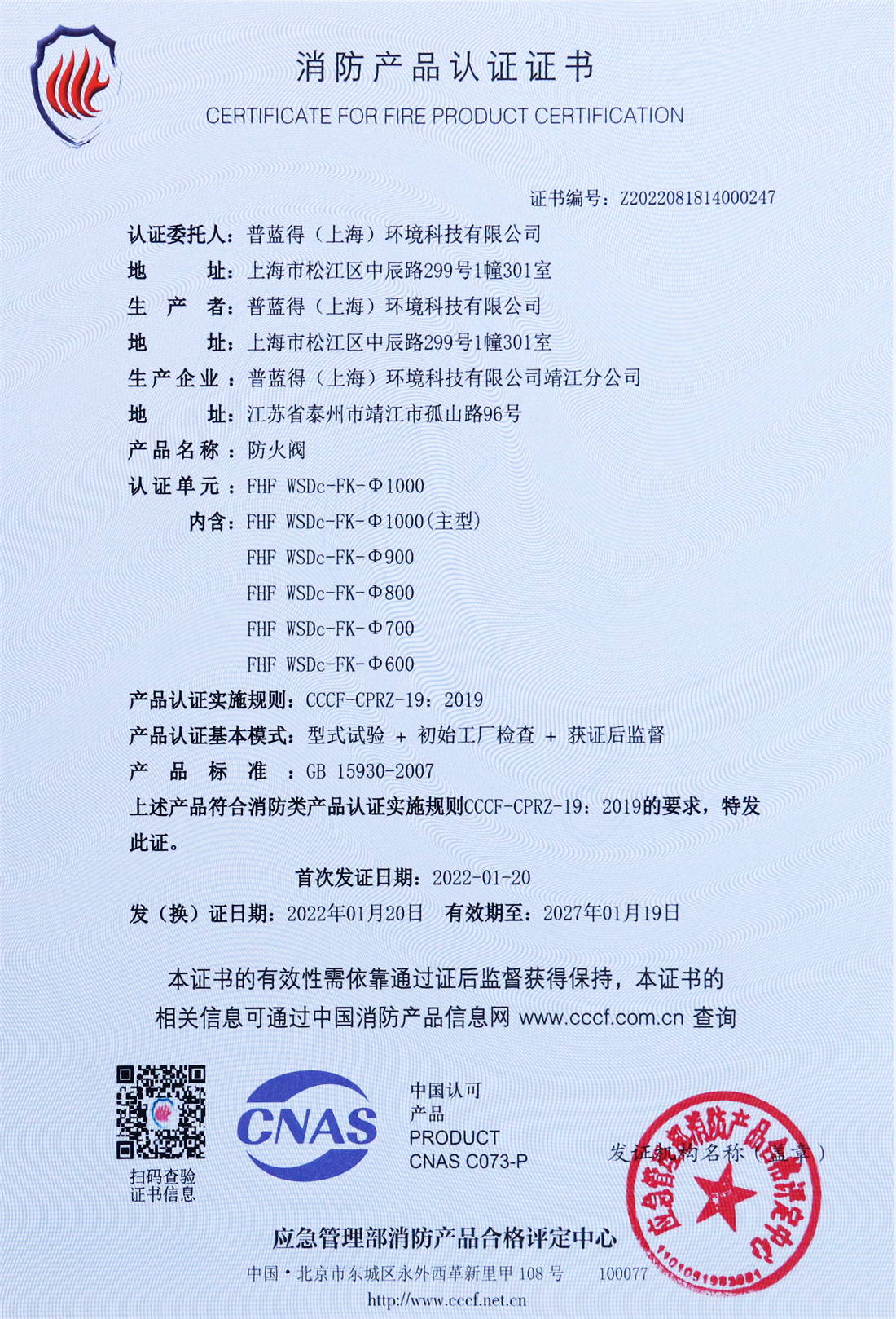 消防产品认证证书