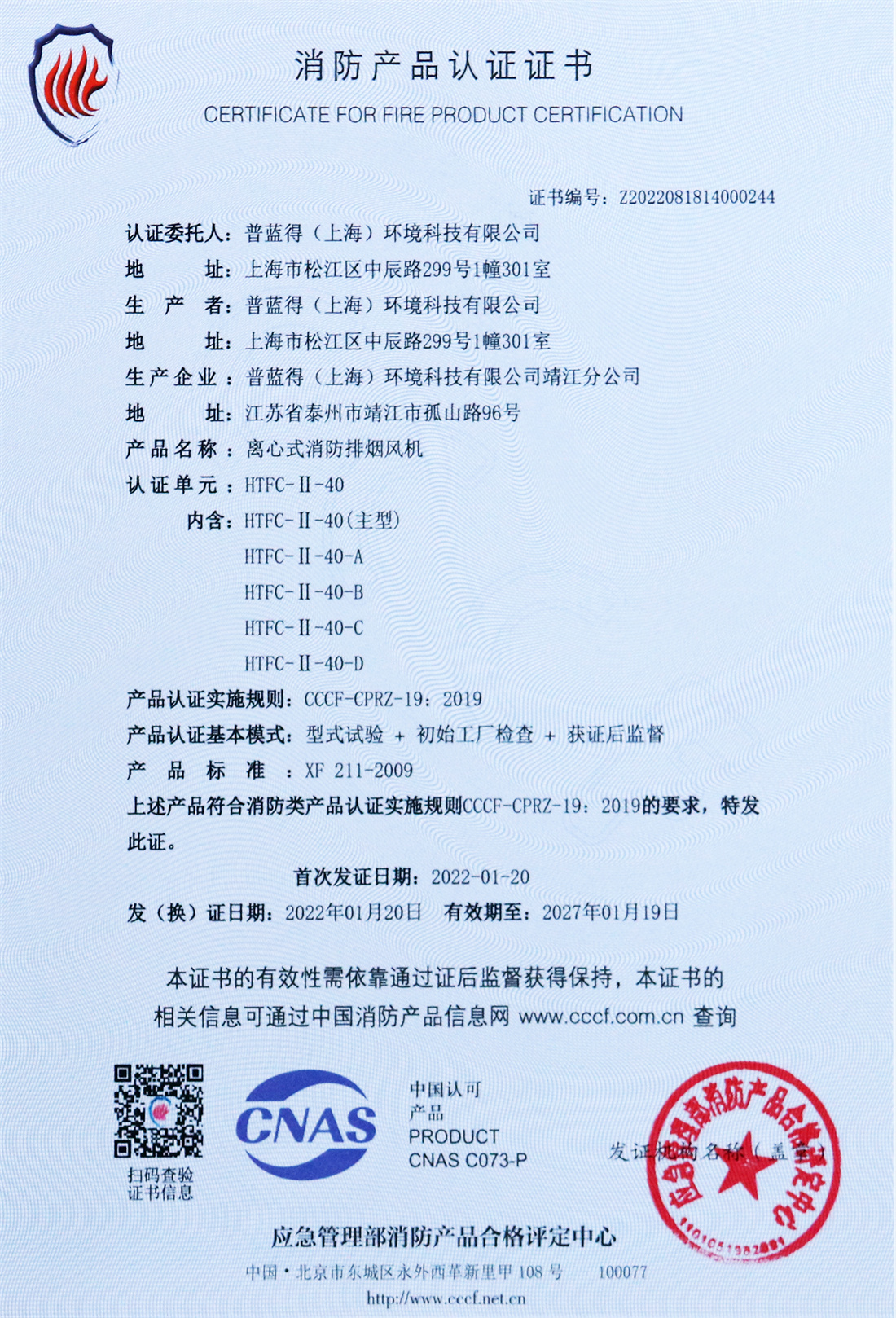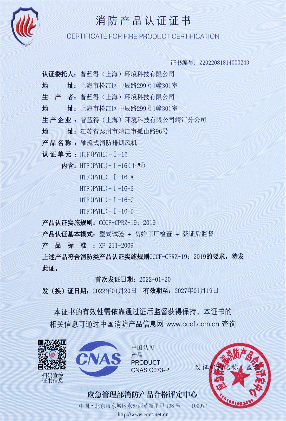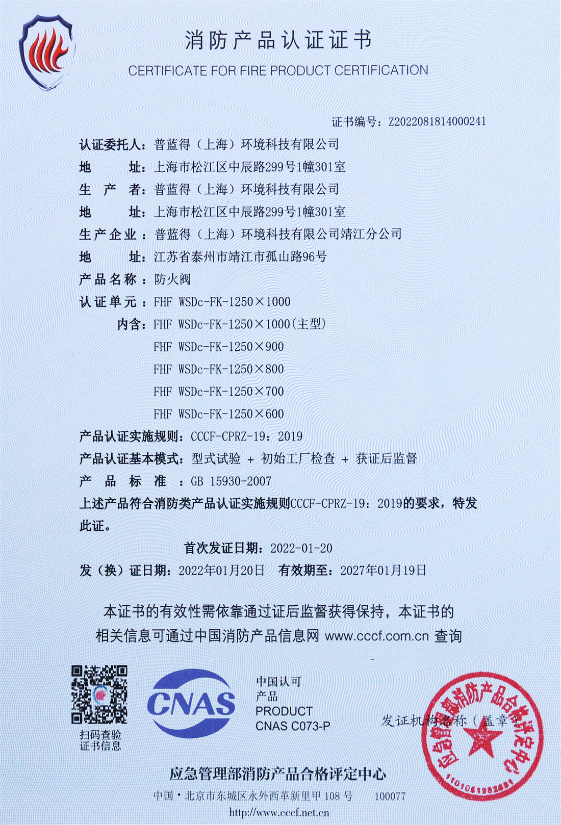 消防产品认证证书